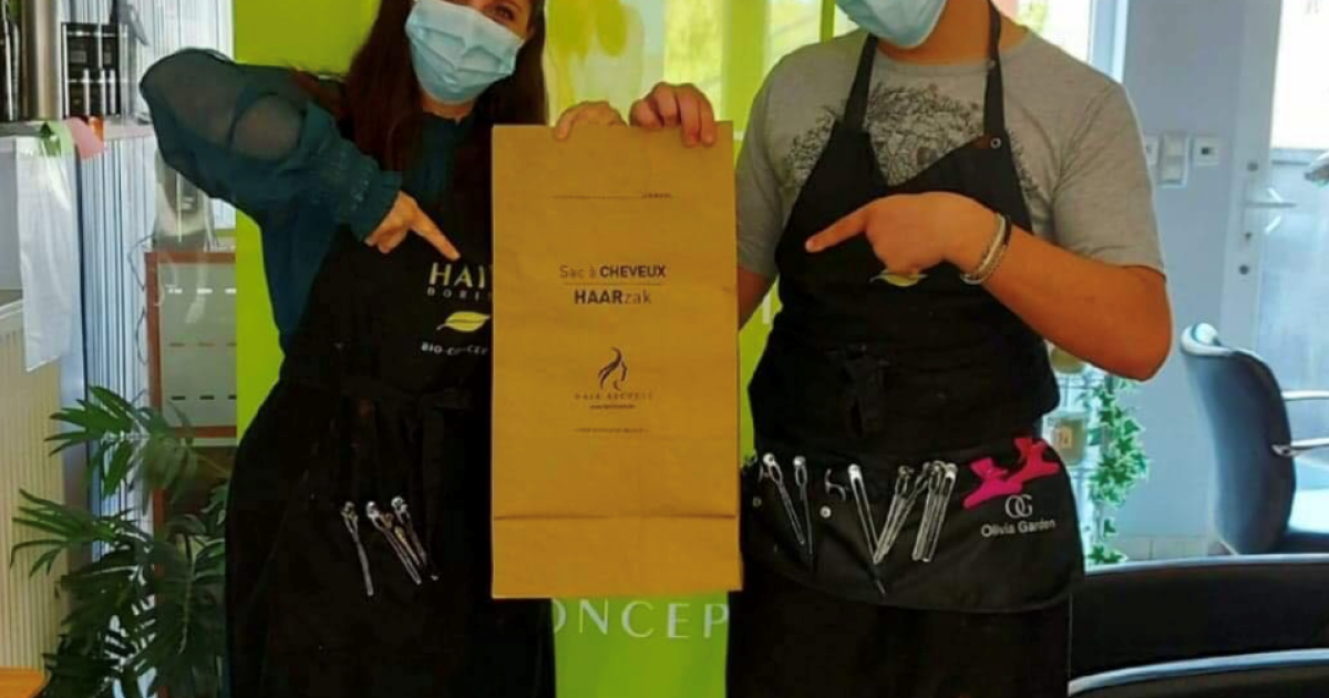 Hair Recycle haalt afgeknipt haar op bij kappers om te gebruiken als kussens die vervuilende olie uit Belgische rivieren absorberen.